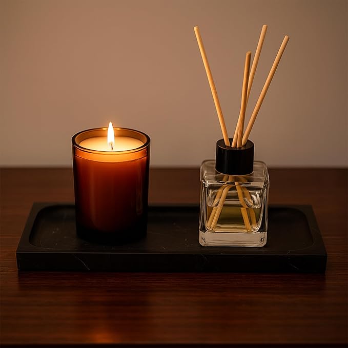 - Functional & Space-Saving Design - This 10.6" x 3.5" rectangular marble tray features a shallow groove to neatly hold daily essentials without taking up much space on your vanity or counter.