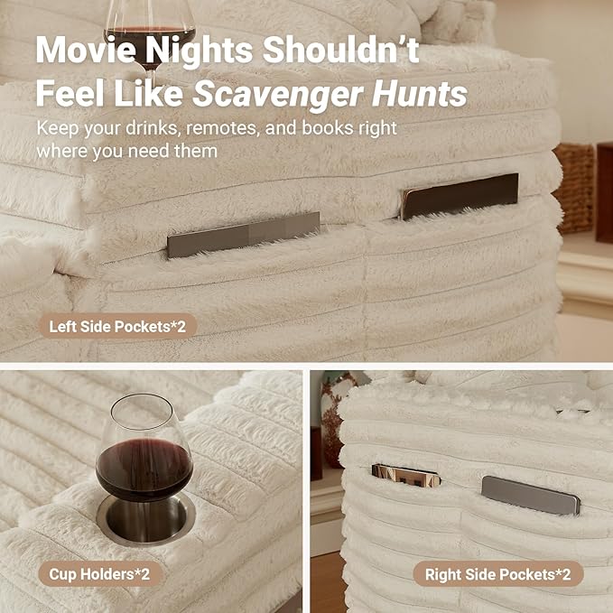 - [Built-in Cup Holders & Storage Pocket]: Thoughtfully designed for convenience, each armrest includes an integrated cup holder to keep your drinks, remote, or phone within arm’s reach, helping to maintain a tidy environment. The side of the chair features two built-in fabric pockets, ideal for storing books, magazines, or a tablet—offering clutter-free relaxation and smarter use of space, ensuring an organized and neat living area.