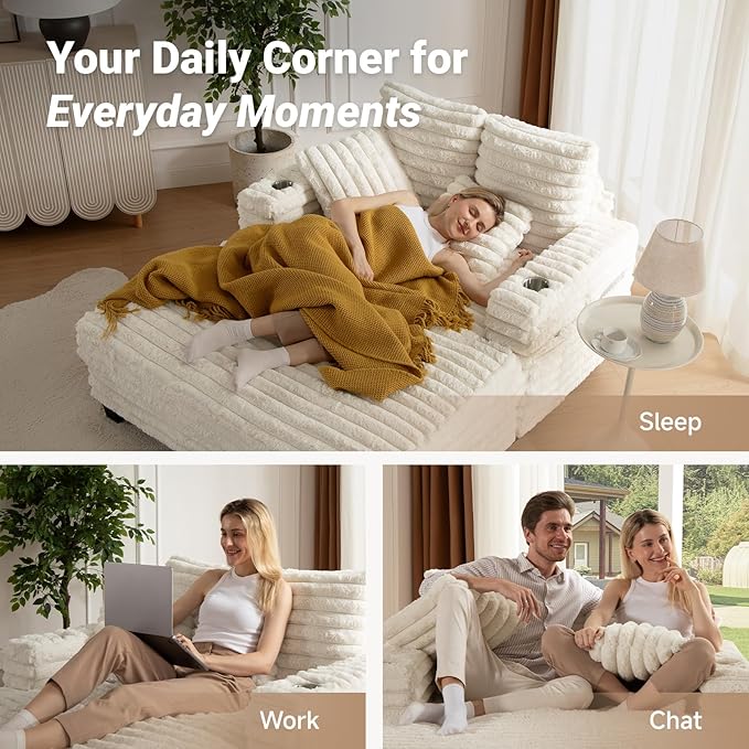 - [Extra Wide & Deep Seat, +20% Size]: Designed for full-body comfort, 64" D x 54" W x 33.5" H that allows you to fully stretch out and unwind. Perfect for tall users or anyone who craves extra room, this oversized design transforms your living room, bedroom, or reading corner into a personal relaxation zone. The spacious seat pairs beautifully with the included pillows to support your neck, back, and waist.