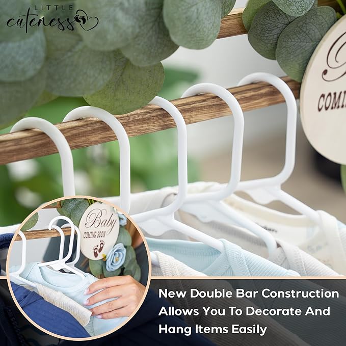- Baby Closet With Two Bars - Dress up your nursery! Hang baby's adorable outfits, bibs, or accessories on one bar. Decorate the other bar with eucalyptus plant for a touch of calming greenery (wire ties and plant included).