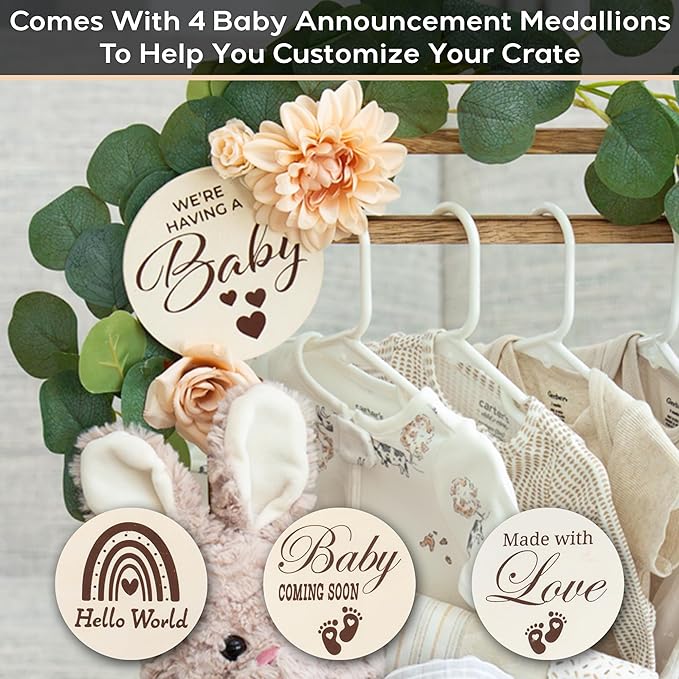 - Personalize Your Baby Shower Gift Basket - Spell out the baby's name with the two included letter sets and add a heartwarming touch with 4 pre-designed wooden signs like "Made With Love" or "Baby Coming Soon"