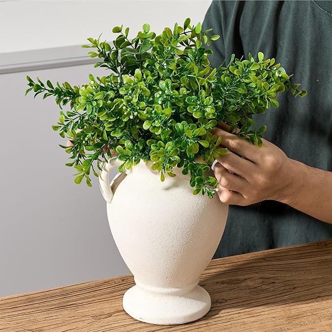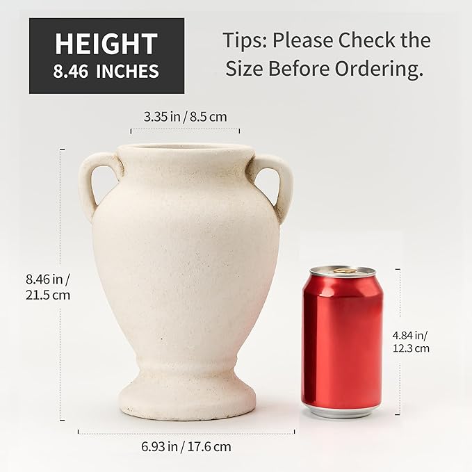 - Vase with Elegant Handles: This rustic vase for home decor measures 6.93" W x 8.46" H with a mouth diameter of 3.35", and is ideal for displaying artificial flowers, dried florals and fresh flowers. The bottom of the pottery vase is equipped with a non-slip pad, which prevents the flower vase from scratching the table or floor during movement during placement.