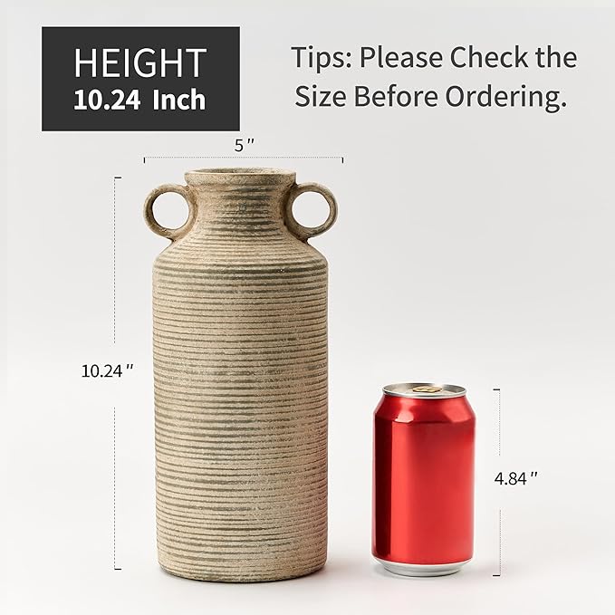 - 【Versatile Decor Piece】The vintage vase measures 10.24" height and 4.49" width. Perfect for fresh or dried flowers. Effortlessly elevate the aesthetics of any room -be it your living room, kitchen, bedroom,bathroom, or office-with our product. It seamlessly blends with various decor styles,including boho, rustic,modern farmhouse,and cottagecore.For an extra pop of color, simply add your favorite faux or fresh flowers.
