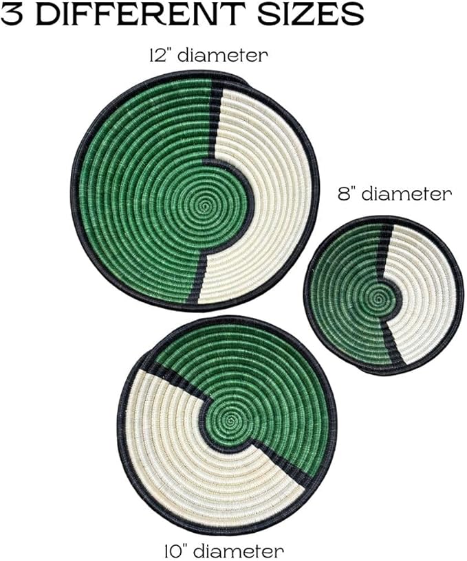 Handwoven African Basket Handmade sisal Fruit Bowl Wall Hanging decorative Baskets for Home Living Room Kitchen Centerpiece Zen Designs Arts and Crafts (Green Black White, 8in diameter)