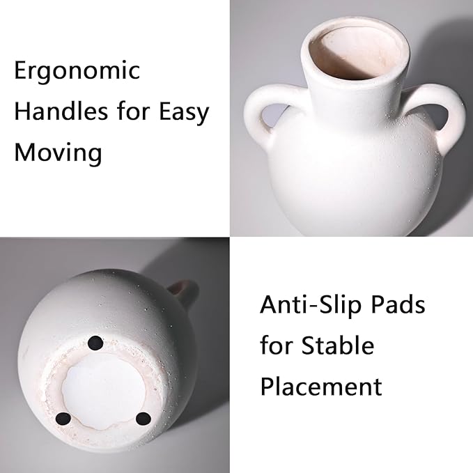 - Non-Slip Bottom Neutral Vase: The vases is 7.3 inches tall and 6.5 inches wide With a 2.8-inch diameter at the mouth. The bottom of the vase is equipped with a non-slip pad, which prevents the flower vase from scratching the table or floor during movement,Featuring a waterproof interior, ceramic vase can hold water for fresh flowers or display faux, pampas grass and dried plant.