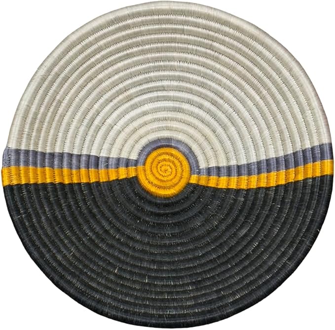 Handwoven African Basket Handmade sisal Fruit Bowl Wall Hanging decorative Baskets for Home Living Room Kitchen Centerpiece Zen Designs Arts and Crafts (Black Yellow Beige, 16in diameter)