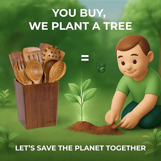 - Crafted from Acacia Wood: Made from dense, long-lasting Acacia wood known for its durability and rich grain, this wooden kitchen utensil set resists moisture and holds up beautifully over time.