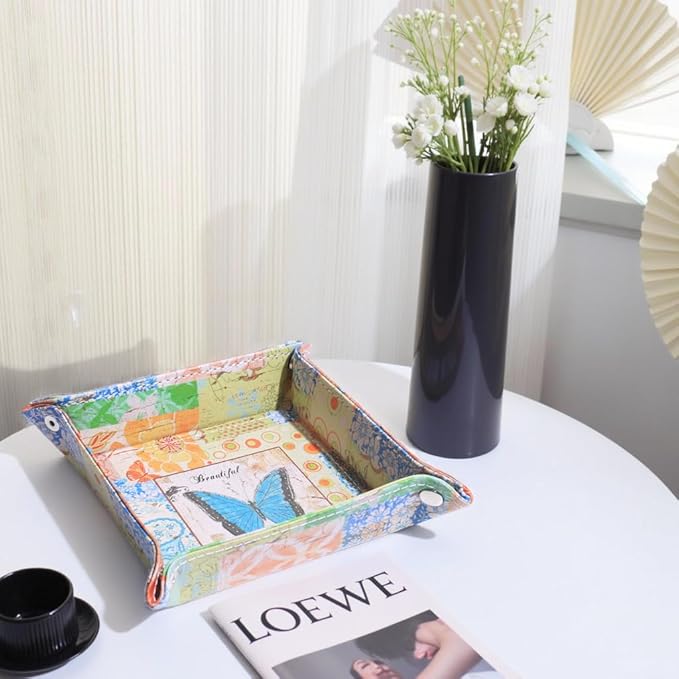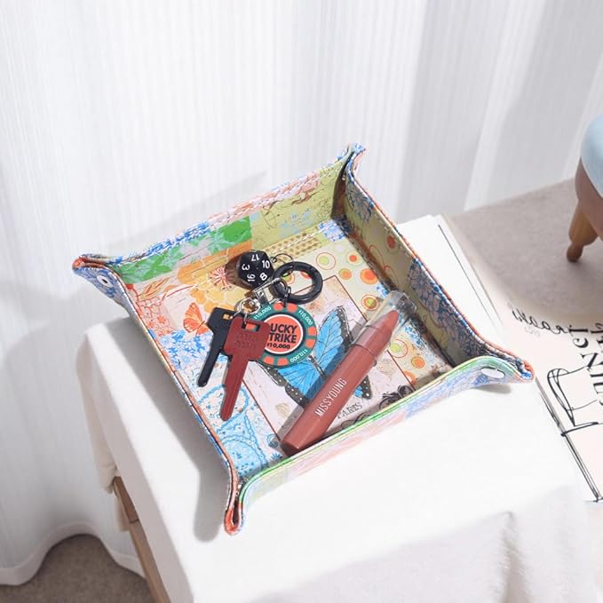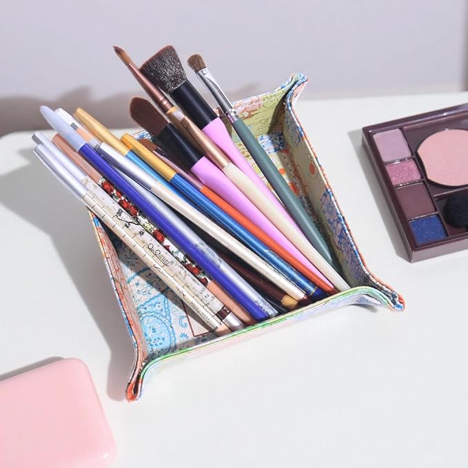 - VERSATILE STORAGE: Foldable valet tray perfect for organizing daily essentials like keys, jewelry, coins, makeup brushes, and small accessories on your desk or dresser