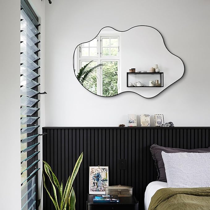 - Various Size: Irregular frameless mirror are available in 31.5"x23.6", 47.2"x21.6", 52"x25.5", 59"x30". With an ultra-thin painting, this mirror is both functional and stylish