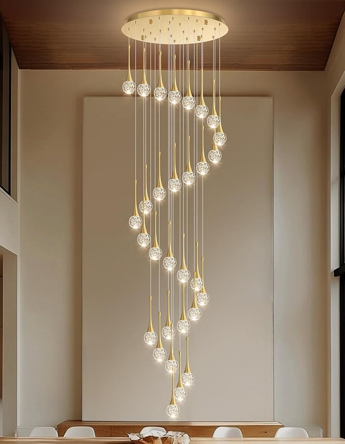30 Light Modern Glam Crystal Chandelier for High Ceiling LED Dimmable Ceiling Pendant Light Staircase Foyer Enterway Living Room Chandelier Lighting Antique Gold