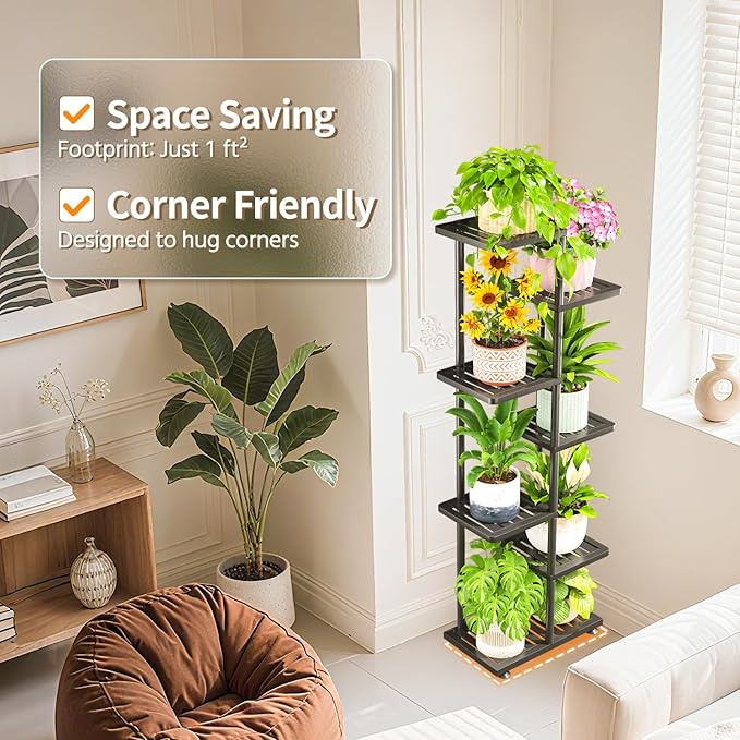 - 【Stacked for Small Spaces】The vertical multi-tier design lets you stack plants upward—not outward—transforming unused slim corners and tight spots into lush display zones. Perfect for apartments or small homes, with thoughtfully spaced tiers that allow every plant to grow fully without crowding.