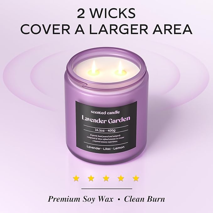 Lavender Candle, 14.1 oz Scented Candles for Home, 2 Wicks Blended Scents Aromatherapy Candles for Women and Men, Birthday Gifts for Women (Lavender+Lilac+Lemon)