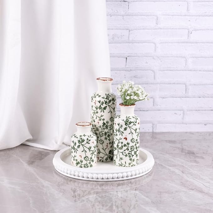 - 【Versatile Home Decor Styles】Blending seamlessly with farmhouse, vintage, rustic, and chinoiserie decor, these green floral vases bring a refreshing accent to your living room, bedroom, kitchen, or office. Their natural colors also pair beautifully with sage green house decor and cottage-style home accents