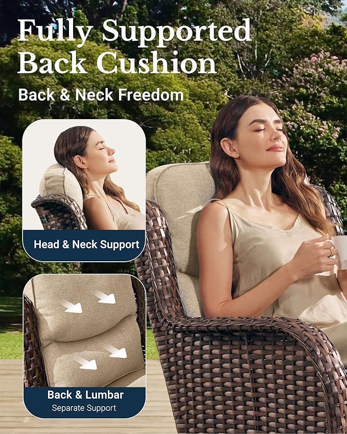 HILLGA Luxury Patio Furniture Set with 6-Inch Thick Cushions, High Back Outdoor Swivel Rocker Chairs and Table, 6-Piece All Weather Conversation Set for Porch Deck Balcony Yard, Beige (V3)