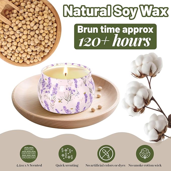 - Clean-Burning Soy Wax: The scented candles are made of 100% natural soy wax and 8% essential oils and burn without black smoke.Made with natural soy wax, our non toxic candles are completely safe for you to enjoy peaceful moments with peace of mind