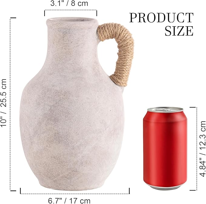 - 【Hand-Painted Texture】This white ceramic vase features a hand-applied weathered glaze, with subtle variations that give each piece a one-of-a-kind, organic look. The rustic texture complements any decor—from rustic to farmhouse—effortlessly enhancing your space with understated charm.(Warm Tips: The surface effect is purely handmade, and each product is not exactly the same.)