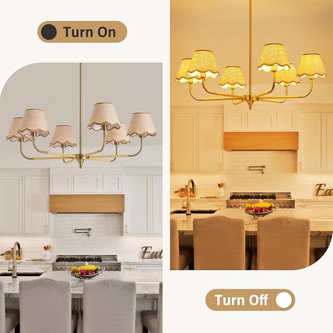 - [Dimmable&Bulb] ZOOPEEN Pendant Light needs 6 E12 bulbs(Bulb Not Included). Each bulb has a maximum of 60W, giving off warm light, creating a romantic and warm atmosphere for the scene. This chandelier can be fully dimmed when used with dimming bulbs and compatible dimming switches.