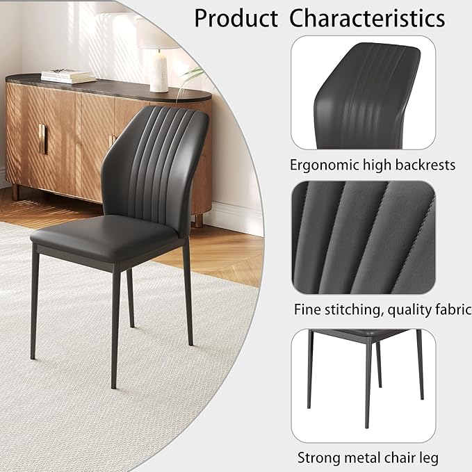 - 4. About Modern Dining Chair: This dining chair is made of high-quality PU leather wrapped with high elastic sponge, which is comfortable and easy to clean. Thick upholstery relaxes your hip muscles, metal legs will not deform.