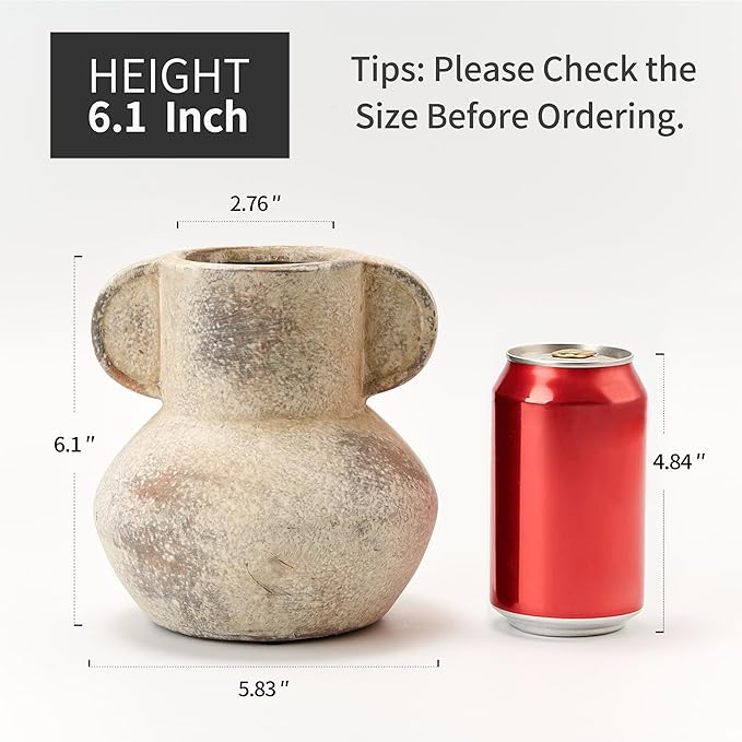 - 【Versatile Decor Piece】The rustic vase measures 6.1" height and 5.83" width with 2.76" opening. Perfect for fresh or dried flowers. Effortlessly elevate the aesthetics of any room -be it your living room, kitchen, bedroom,bathroom, or office-with our product. It seamlessly blends with various decor styles,including boho, rustic,modern farmhouse,and cottagecore.For an extra pop of color, simply add your favorite faux or fresh flowers.