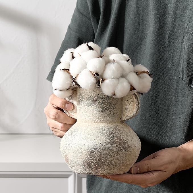 - 【Enjoy Time of Flower DIY】 Our handmade ceramic rustic vase is suitable for DIY flower arrangements, natural pampas grass, eucalyptus, dandelions, reeds, palm leaves, cattails and other green plants, fresh flowers,cherry blossoms, cut flowers, flower stems,botanical artificial flowers, fake flowers, rabbit tails, goat's hooves, feathers, etc.Unleash your creativity with this versatile pottery vase.