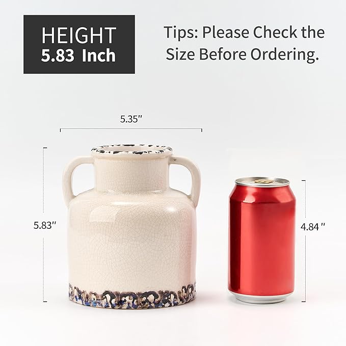 - 【Versatile Decor Piece】The rustic vase measures 5.83" height and 5" width with 2.76" opening. Perfect for fresh or dried flowers. Effortlessly elevate the aesthetics of any room -be it your living room, kitchen, bedroom,bathroom, or office-with our product. It seamlessly blends with various decor styles,including boho, rustic,modern farmhouse,and cottagecore.For an extra pop of color, simply add your favorite faux or fresh flowers.