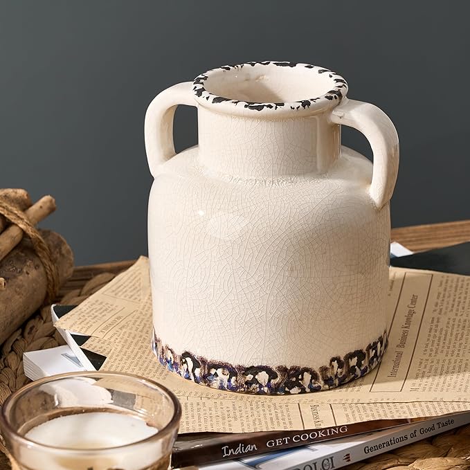 - 【Warm and Rustic style】This farmhouse vase is designed to show the simple and rustic style. The unique design of the two handles is convenient for us to carry the vase.Watertight design enables the ceramic vase boho table decor suitable for fresh, faux and dried botanicals, or alone, as a beautiful object in its own right.