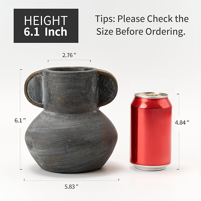 - 【Versatile Decor Piece】The rustic vase measures 6.1" height and 5.83" width with 2.76" opening. Perfect for fresh or dried flowers. Effortlessly elevate the aesthetics of any room -be it your living room, kitchen, bedroom,bathroom, or office-with our product. It seamlessly blends with various decor styles,including boho, rustic,modern farmhouse,and cottagecore.For an extra pop of color, simply add your favorite faux or fresh flowers.