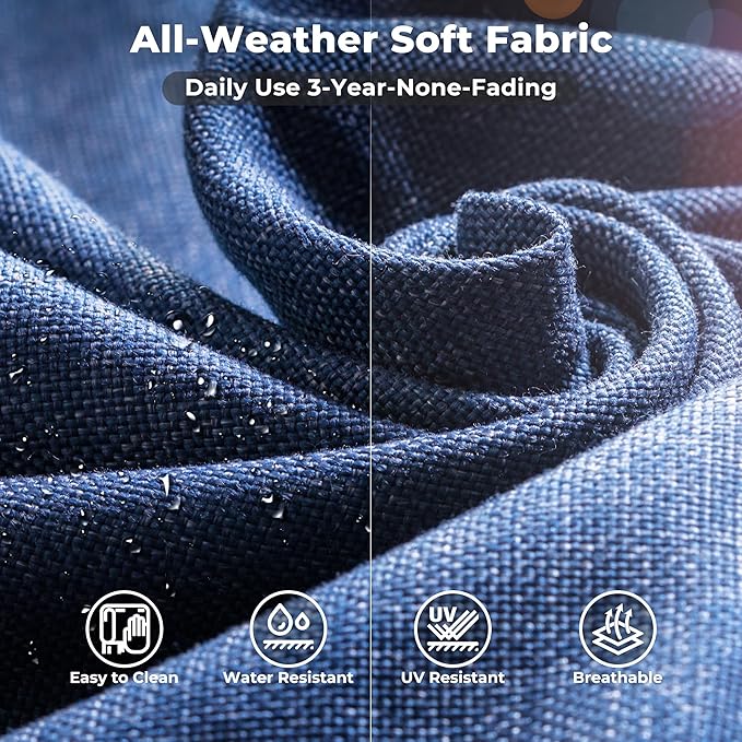 - Comfy Upgraded Cushion: The outdoor chair cushion is composed of a weather-resistant olefin fabric cushion cover wrapped in a thick inner core, making it very comfortable and breathable to sit on the chair, and give you strong lumbar support.
