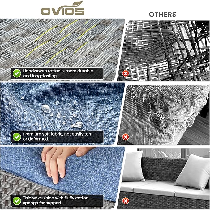 - All-weather Wicker Rattan: Our outdoor sofa sets have very durable wicker rattan for all-weather use and a natural texture with good coloring. The high-quality patio seating made of powder coated steel frame ensures good strength and stability.