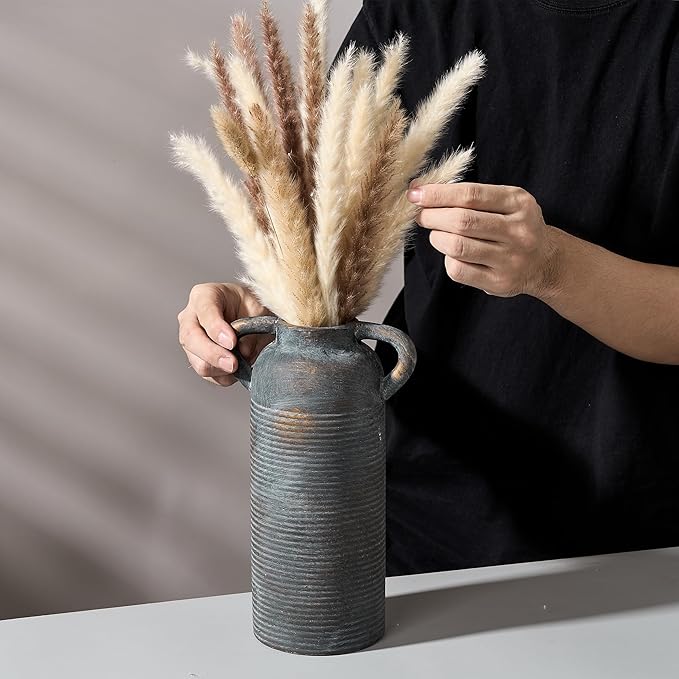 - [Enjoy Time of Flower DIY] Rustic vase is suitable for DIY flower arrangements, natural pampas grass, palm leaves, eucalyptus, dandelions, reeds, cattails and other green plants, cherry blossoms, cut flowers, flower stems, dried flowers, fresh flowers, botanical artificial flowers, fake flowers, rabbit tails, goat's hooves, feathers, etc.