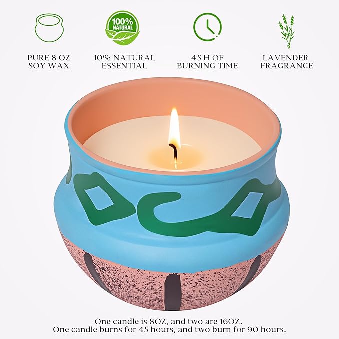 Lavender Candles, Scented Candles Gift Set for Women,Candles for Home Scented,Natural Soy Wax, Artisanal Pottery Jar,Set 2 Pack, Total 16oz, 90 Hours of Burn, One Silk Scarf