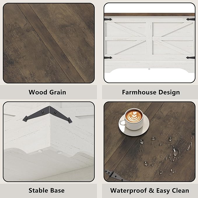 - Lift Top Square Coffee Table: The tabletop effortlessly rises from 18.1" to 23.8", transforming your farmhouse coffee table into a floating workspace or dining area.Meet both functionality and practicality