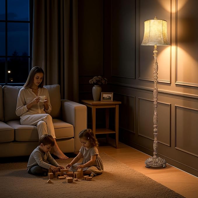 - RETRO FLOOR LAMP: Floor lamp has retro design, exquisite carved patterns resin body with light brown finish, non-fading, solid construction, adds a warm, vintage charm that fits perfectly with retro style decor. Sturdy floor lamp, blending traditional elements and aesthetics, lights up your room space