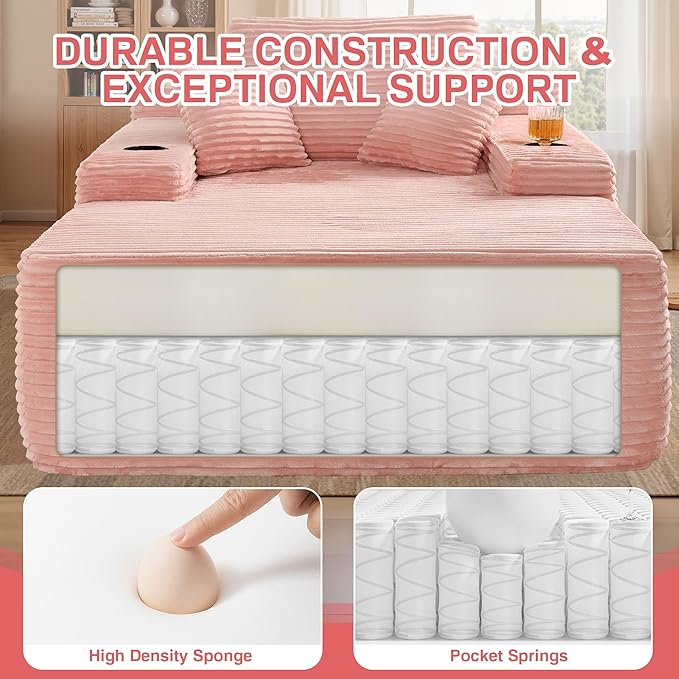 - Reliable Support: The cushion of the recliner bed combines high-performance pocket springs and high-density foam, which effectively disperses pressure and preventing deformation, ensuring long-lasting durability and excellent support. The doll cotton wrapped inside the pillows greatly improves the comfort.