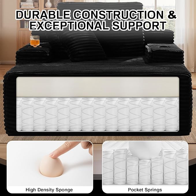 - Reliable Support: The cushion of the recliner bed combines high-performance pocket springs and high-density foam, which effectively disperses pressure and preventing deformation, ensuring long-lasting durability and excellent support. The doll cotton wrapped inside the pillows greatly improves the comfort.