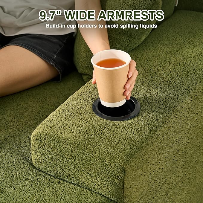 - User-friendly Design: The lounge sofa has wide armrests, providing loose arm support and space for placing items. Each armrest includes a build-in cup holder to keep your drinks, remote or phone within arm’s reach. Three pillows in the back greatly fits the curves of the neck, back and lumbar, giving you endless comfort.