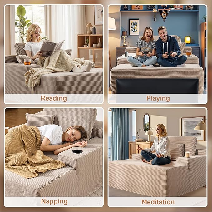 - Reliable Support: The cushion of the recliner bed combines high-performance pocket springs and high-density foam, which effectively disperses pressure and preventing deformation, ensuring long-lasting durability and excellent support. The doll cotton wrapped inside the pillows greatly improves the comfort.