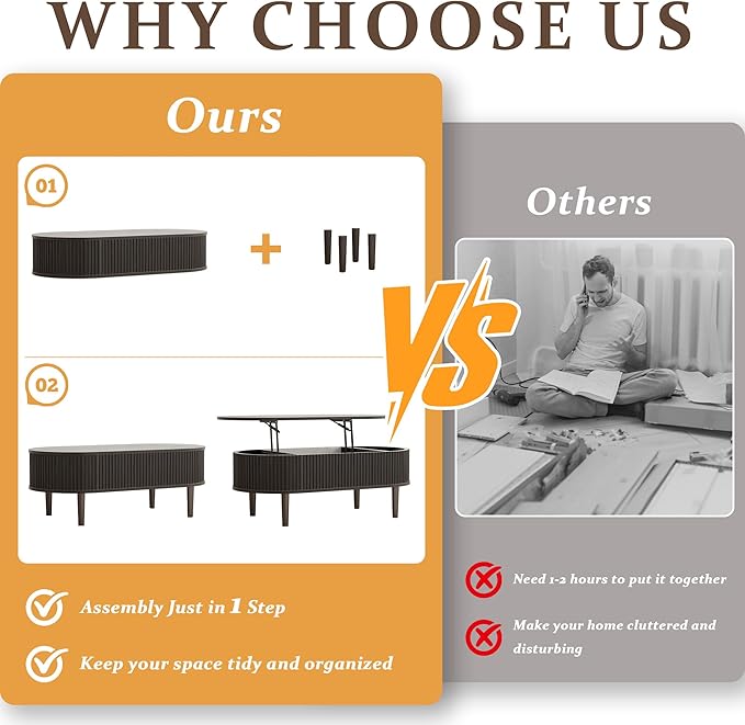 - 【Modern Coffee Table】:Our lift-top coffee table combines the elegant lines of a grooved panel with a natural wood grain tabletop, preserving the warm texture of rustic style while infusing spaces with fashion flair through modern design. Whether in a living room or office environment, it becomes a visual focal point.