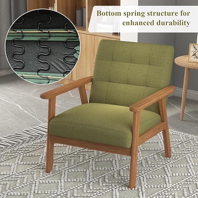 - Thicken Cushion for Comfy Seating: Experience unparalleled comfort with the upholstered accent chair’s 5" thick seat cushion, made of breathable linen fabric, plush sponge, and bottom spring structure for a skin-friendly touch and exceptional softness