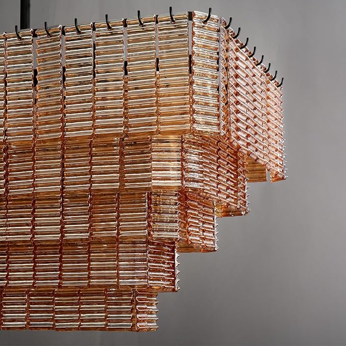 - Modern Rectangular Amber Glass Chandelier – Featuring a striking multi-tiered design with layered amber glass prisms, this large chandelier delivers a luxurious and warm glow. Perfect as a dining room chandelier, kitchen island pendant light, or statement ceiling fixture in living rooms and foyers.