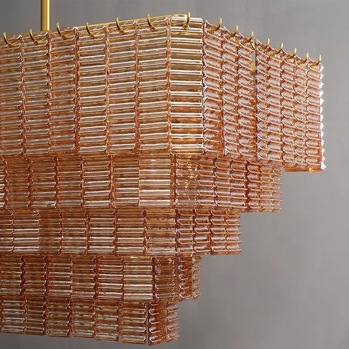 - Modern Rectangular Amber Glass Chandelier – Featuring a striking multi-tiered design with layered amber glass prisms, this large chandelier delivers a luxurious and warm glow. Perfect as a dining room chandelier, kitchen island pendant light, or statement ceiling fixture in living rooms and foyers.