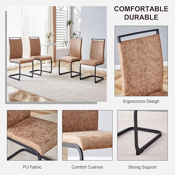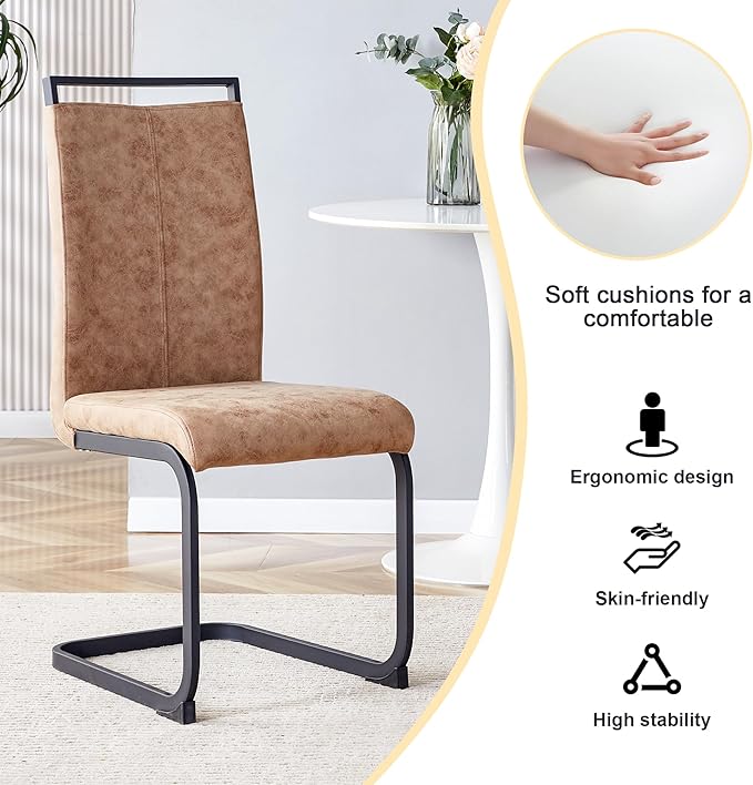 - Space-Saving Cantilever Chairs – Unique C-shape design with 18.9" seat height allows chairs to tuck under the table, maximizing space in modern homes