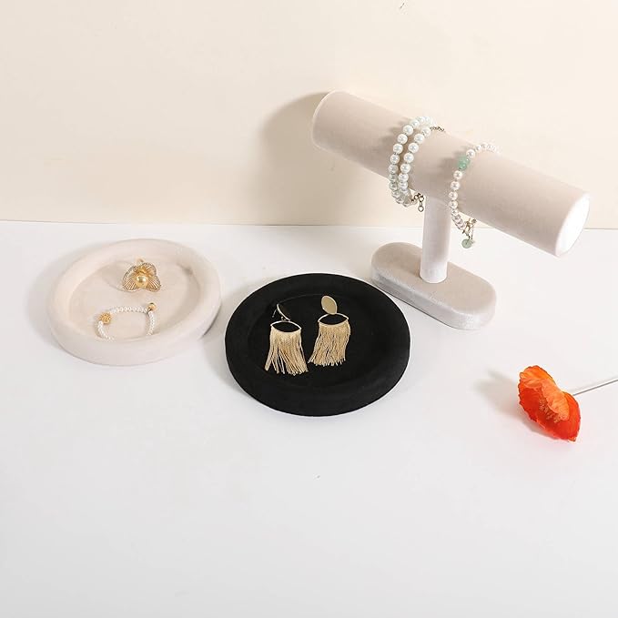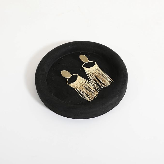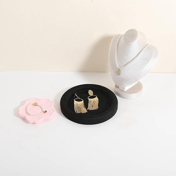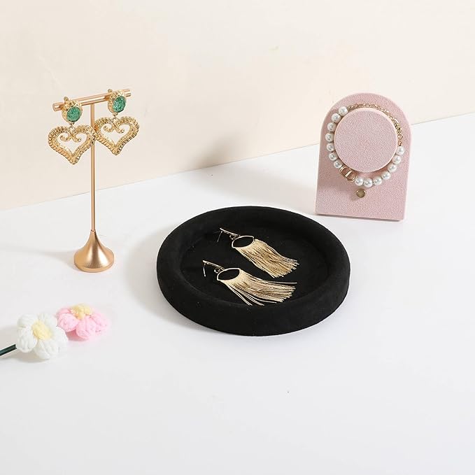 GemeShou Round Jewelry Organizer plate, Top Microfiber velvet Jewerly display tray, Empty Jewelry showcase tray for Necklace Bracelet Ring Earring display stand holder (Black-Small, 5.9 x 5.9 in)