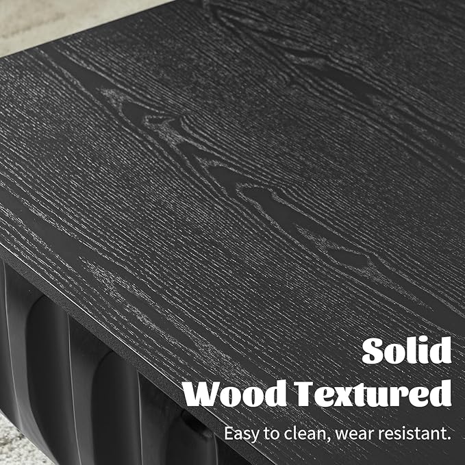- High-Quality Materials: The coffee table is made of solid wood veneer and medium-density fiberboard materials, which not only shows the natural texture of wood, but also has excellent durability. The design of the base not only ensures durability, but also adds a unique element to the overall look and feel of the table. The curved line design does not worry about scratching the skin.