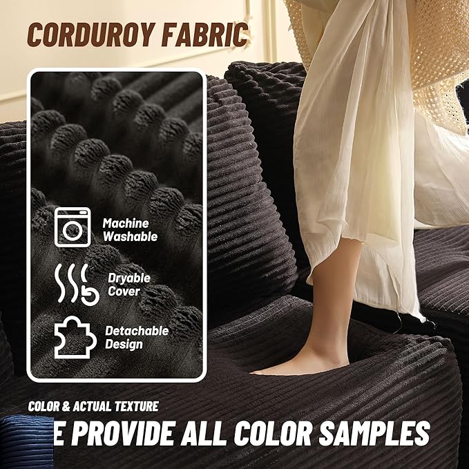 - Soft Corduroy Fabric & Samples Available:Crafted from fine corduroy, its breathability keeps you cool even on warm days, while the unique texture adds a touch of sophistication. Plus, the corduroy material is both durable and stain resistant, combining style with practicality. And we can PROVIDE ALL COLOR FABRIC SAMPLES for you to review